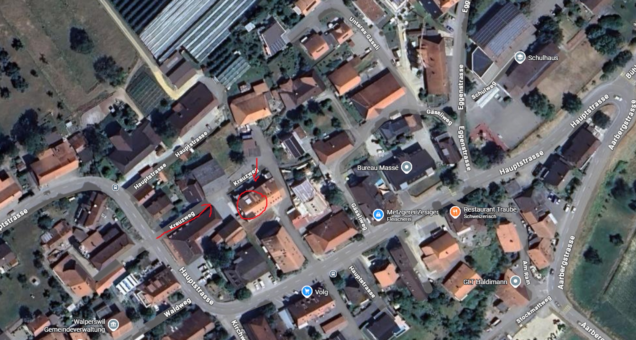 Ein Parkplatz steht Ihnen hinter dem Haus zur Verfügung. Um diesen zu erreichen, biegen Sie in den Kreuzweg ein. Der Parkplatz befindet sich auf der linken Seite.